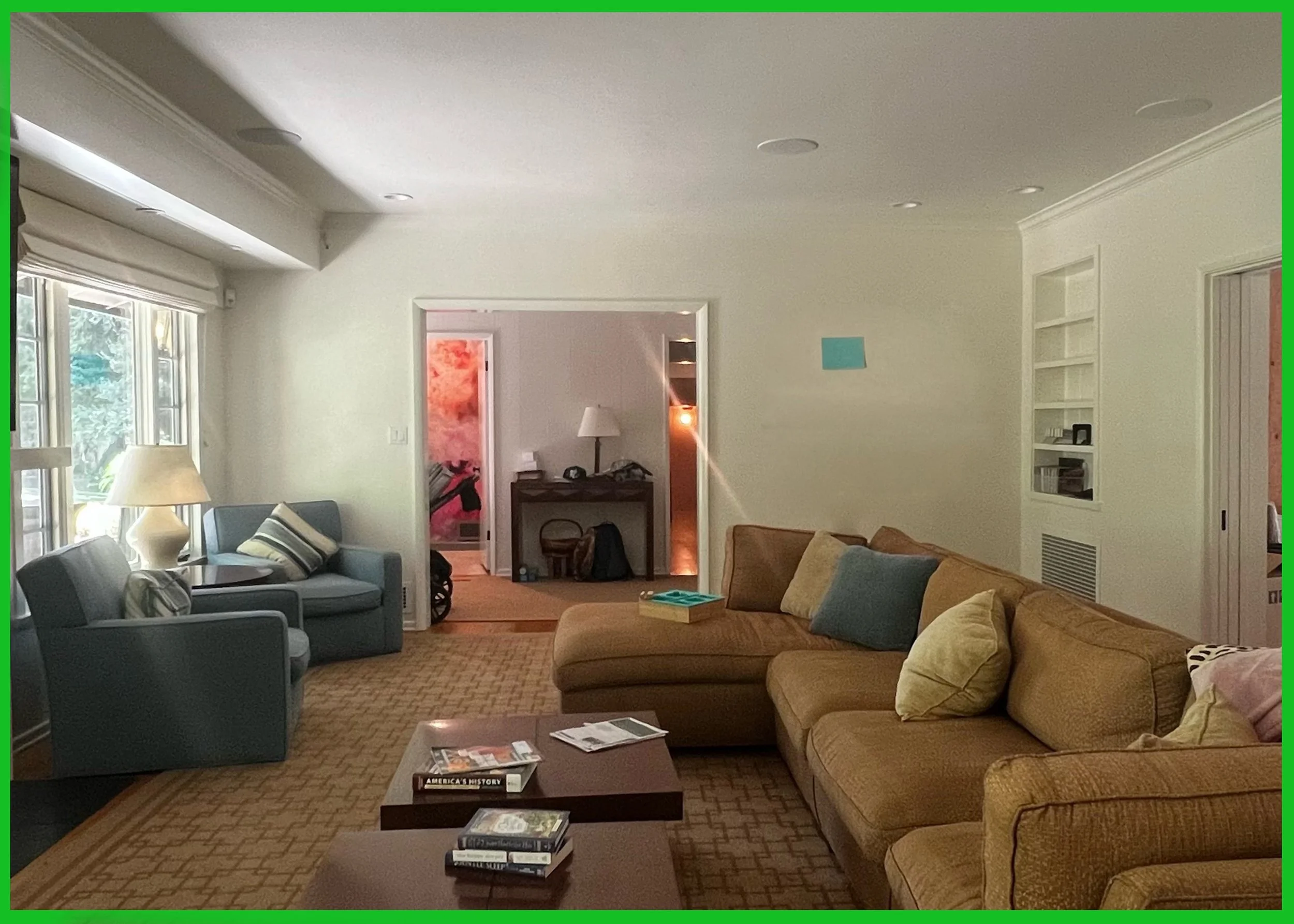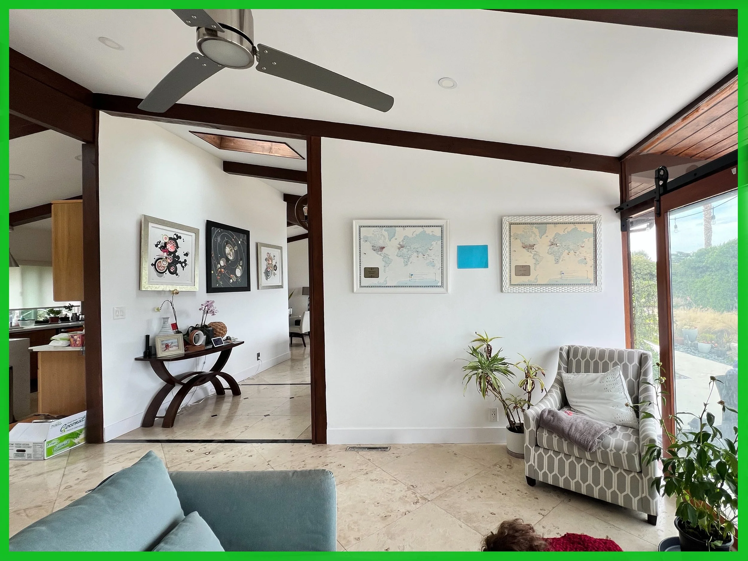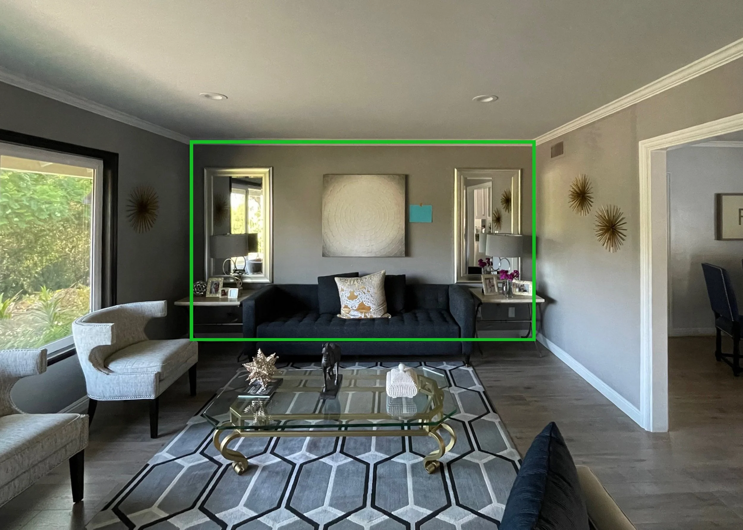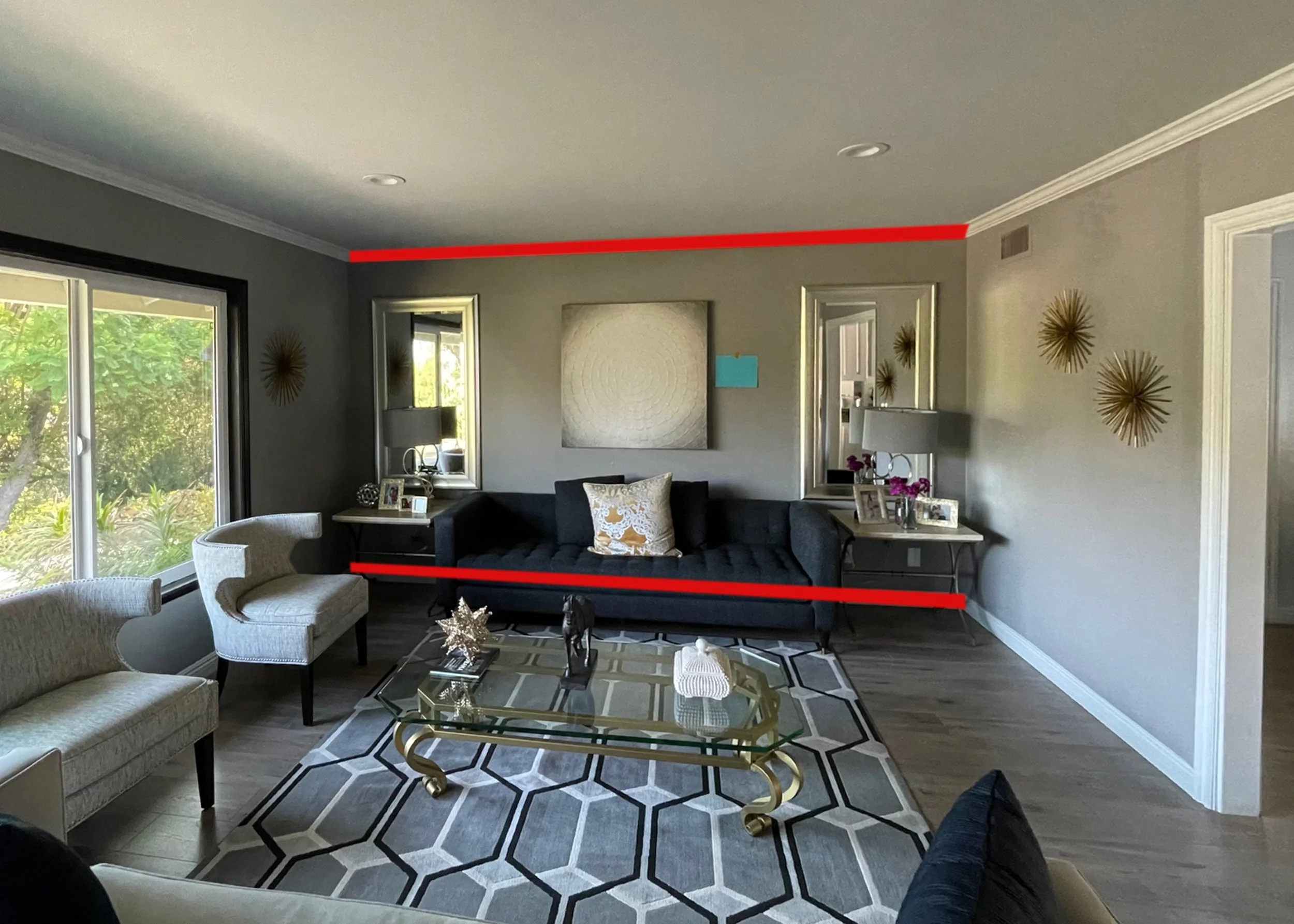Please stand to the back of the room so your image SHOWS THE WHOLE ROOM so you can see the artwork in your room: