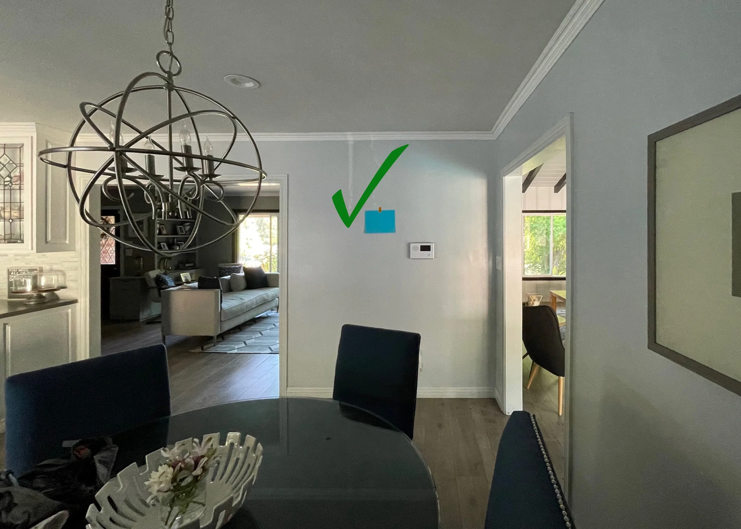 (2) Tape a standard 8.5x11 piece of paper to the wall in approximate place you are considering for your new artwork.
